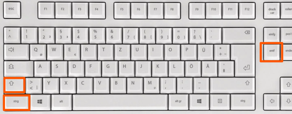 Starten Sie den Browser (Edge, Chrome oder Firefox) Drücken Sie die Tastenkombination der folgenden drei Tasten: [Shift] + [Ctrl] + [Del]